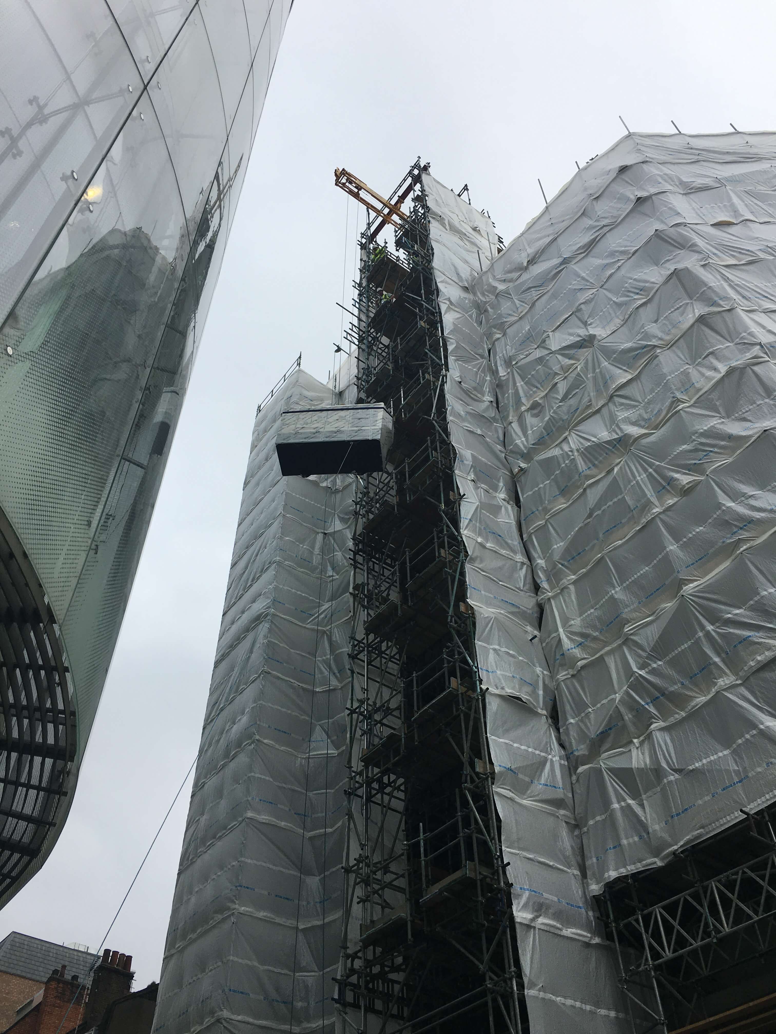 At a project in Leicester Square we had to hoist one of our 110 kVA generators up to the 8th floor.  It came with a Perkins 1104C-44TAG2 industrial diesel engine and a weatherproof acoustic canopy designed to achieve a noise level of 70dB(A) @ 7 metres in free field conditions at 100% load.  We also supplied a 490 litre base fuel tank and a Flue Dilution duct work system.generator installation in progress