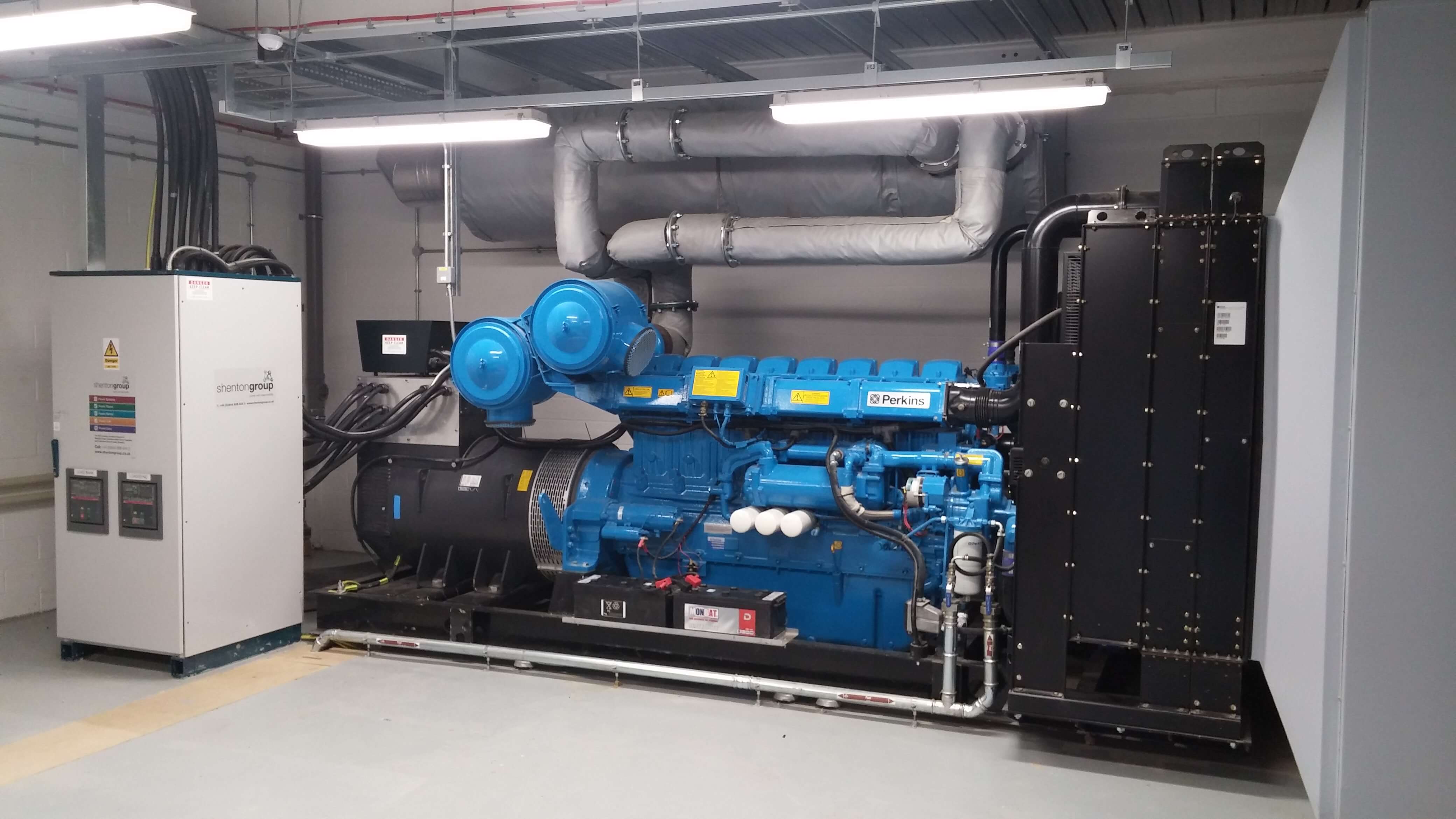 Our client required us to install a 910 kVA open Generator for a Laboratory in Oxfordshire. The requirement was to include the facility to add an additional set at a later date. This project was a very challenging install with low noise requirements, very limited space and cooling air flow restricted to just one wall of the plant room. The generators had to be Mains Synchronised for a no break transfer when switching and had a 15,000 litre bulk tank for extended running time during long power cuts.