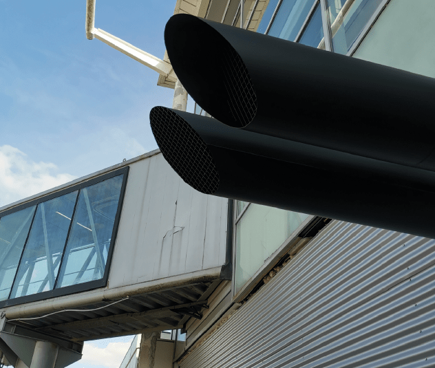 To reduce noise, both generators were then installed on anti-vibration mounts within a plant room. Shenton Group supplied and installed a single inlet attenuator and 2 x outlet attenuators to ensure that the noise level did not exceed 75 dB(A) @ 1 meter. These were fitted with vermin guards, fixed weather louvres and also motorised fire dampeners on the inlet attenuator.